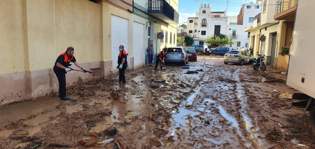 Los voluntarios de Protección Civil, debidamente organizados, trabajaron en ayudar a los vecinos de Alcanar, Las Casas de Alcanar y Alcanar Platja en achicar agua de garajes y sotanos, sacar muebles de las viviendas, limpieza de calles, aceras, control de los voluntarios ocasionales, traslado de damnificados, y un largo etc.
