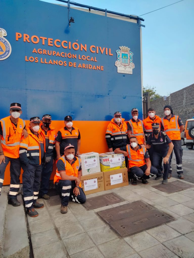 Los compañeros de la AVPC de Los LLanos de Aridane, han empezado a recibir las donaciones de material Técnico enviado por ANAV Protección Civil ,  solicitado para desarrollar con mayor seguridad las labores diarias de atención a la ciudadania y colaboracion con las FFCCSS, como consecuencia de la erupción del Volcán de Cumbre Vieja.