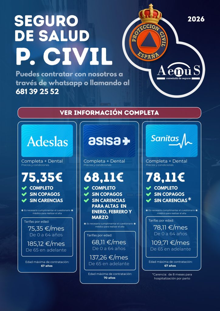 Desde A.N.A.V Protección Civil continuamos un año más con el acuerdo con AENUS CORREDURIA DE SEGUROS para poder ofrecer a los miembros de nuestras entidades asociadas de un SEGURO DE SALUD INTEGRAL en condiciones EXCLUSIVAS Y ÚNICAS.