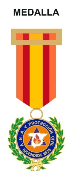 - La Asociación Nacional de Agrupaciones y Asociaciones de Voluntarios de Protección Civil de España, expresar su más profundo agradecimiento y reconocimiento por la inestimable labor desarrollada durante los graves incendios forestales que asolaron nuestro país en el año 2025, por ello, conforme al Art. 7º del Reglamento de Honras ha acordado por unanimidad otorgar un reconocimiento especial, en relación con esta situación de emergencia, que ha puesto a prueba una vez más a toda nuestra sociedad.