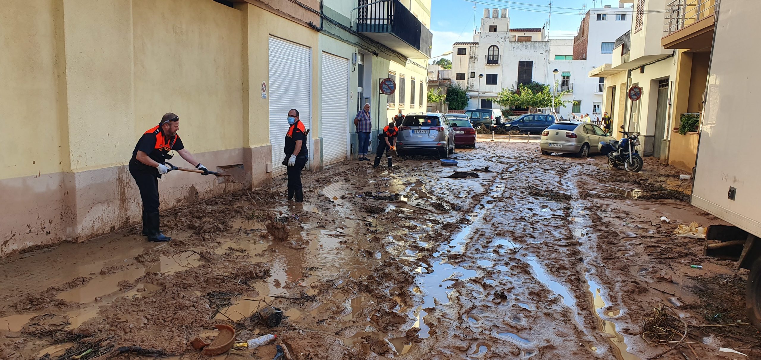 Extraordinaria labor de los voluntarios de Protección Civil en las inundaciones de Alcanar ( Tarragona )